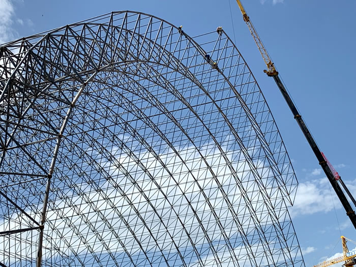 (2)网架加工前应对现场尺寸进行复测,确认无误后方可进行加工、安装;网架制作、运输、安装应遵守《空间网格结构技术规程》JGJ7-2010、《钢网架新泰螺栓球节点》JG/T 10-2009、《钢网架新泰螺栓球节点用高强度螺栓》 GB/T 16939-2016、《新泰钢结构新泰工程新泰施工规范》 GB50755-2012、《新泰钢结构新泰工程新泰施工质量验收标准》 GB50205-2020。
